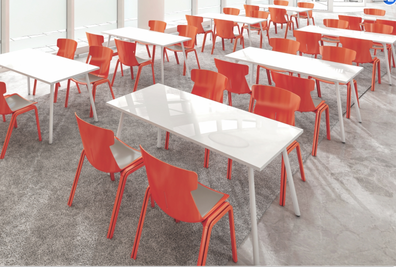 4.桌腳是40mm直徑圓管外噴白色烤漆,表面工藝:多次除油-酸洗—中和-表調(diào)-上膜-結(jié)晶-靜電噴涂,鋼架表面采用環(huán)保乳白色錘紋漆烤漆處理,200℃高溫烘烤,表面平整光潔、噴塑均勻,防止漆面剝落現(xiàn)像;